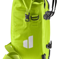 Die wasserdichte Fahrradtasche bewahrt Ausrüstung, Reisegepäck oder Freizeitutensilien sicher vor dem Eindringen der Nässe bei Regen oder Spritzwasser. Dank des Rolltopverschlusses, der sich mittig oder seitlich fixieren lässt, kann das Volumen des leichten Raumwunders um zusätzliche 5 Liter Stauraum erweitert werden.