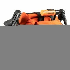 Eine interne Versteifung sorgt für strukturelle Steifigkeit, das seitliche Spann- und Schnallensystem garantiert jederzeit ein kompaktes Packmaß. Ein zusätzlicher Hartschalenrücken sorgt für weitere Steifigkeit und ein verstellbares MOLLE Steuerrohr Haltesystem garantiert einen sicheren Sitz am Fahrrad.
