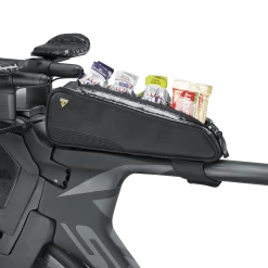 Stylische und schlanke Oberrohrtasche. Bietet dank durchsichtigem Cover schnellen und leichten Zugang zu Energieriegeln, Smartphone, Geldbörse, Werkzeug und anderem kleinem Zubehör, welches schnell zur Hand sein muss.